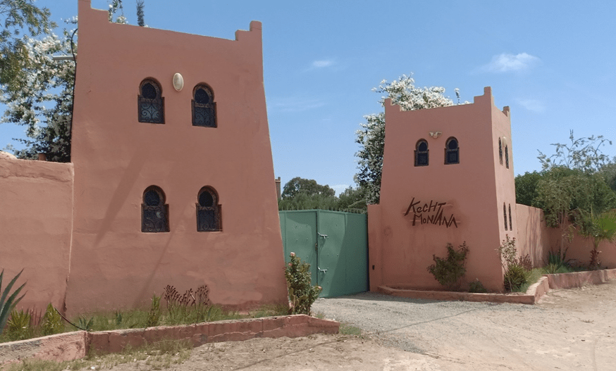 A la sortie de Lamzoudia, faites encore 2.5 km dans la même direction jusqu'à l'enseigne Kech-Montana qui se trouve à gauche de la route
