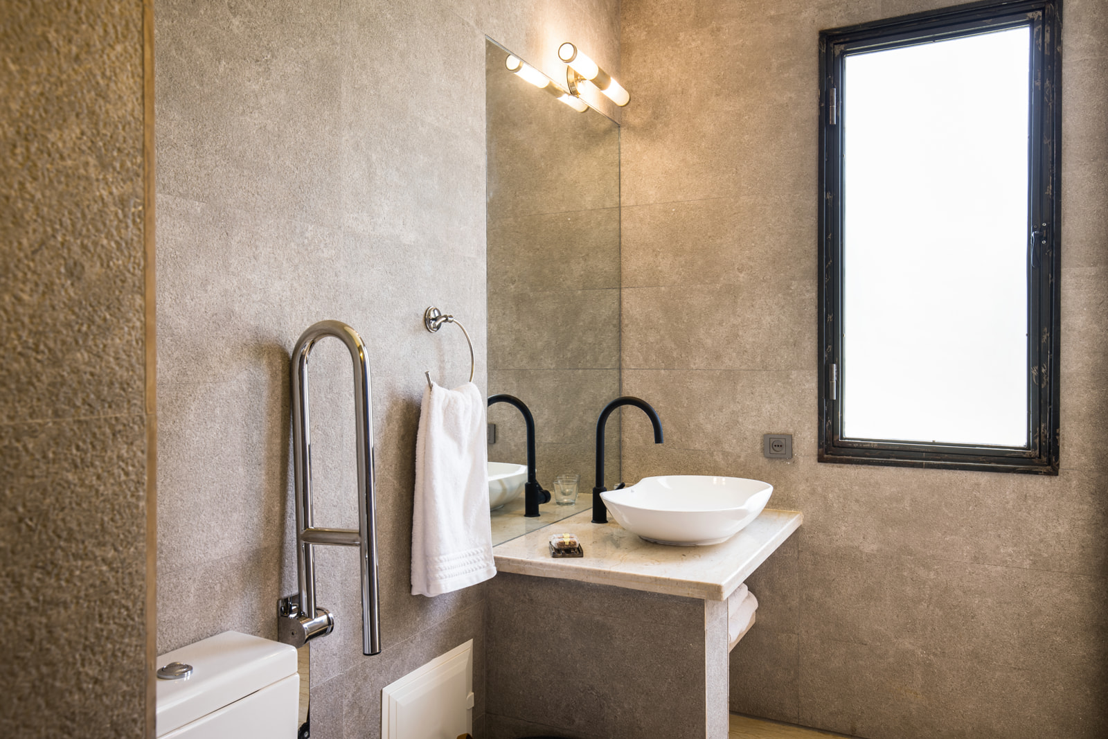Une chambre de la suite a une salle de bains adaptée pour recevoir une personne à mobilité réduite